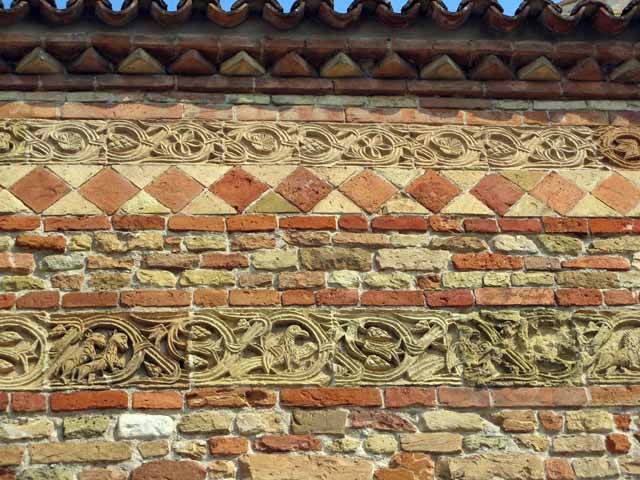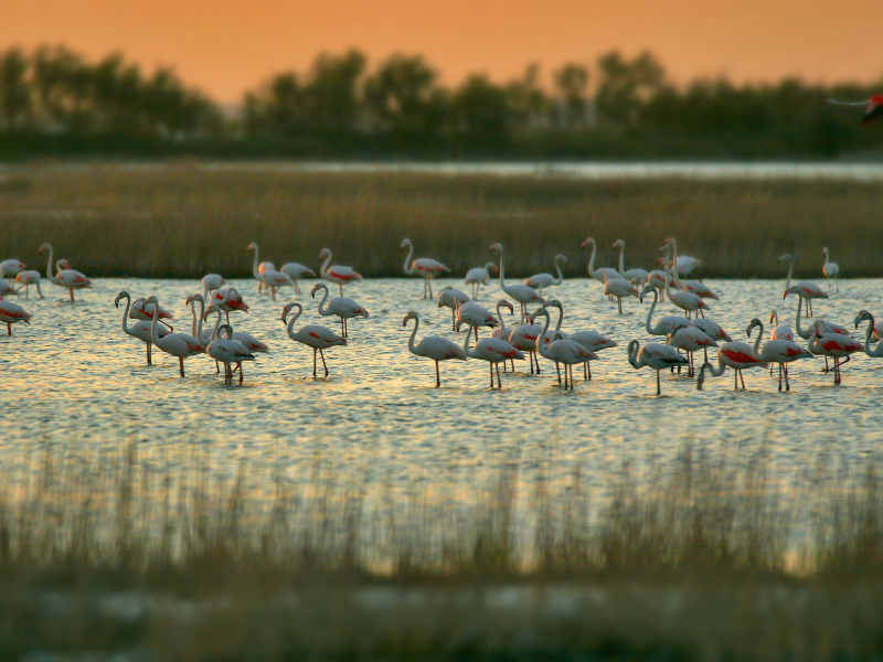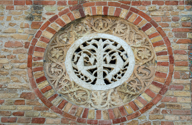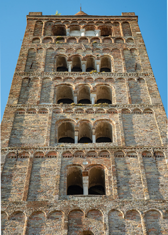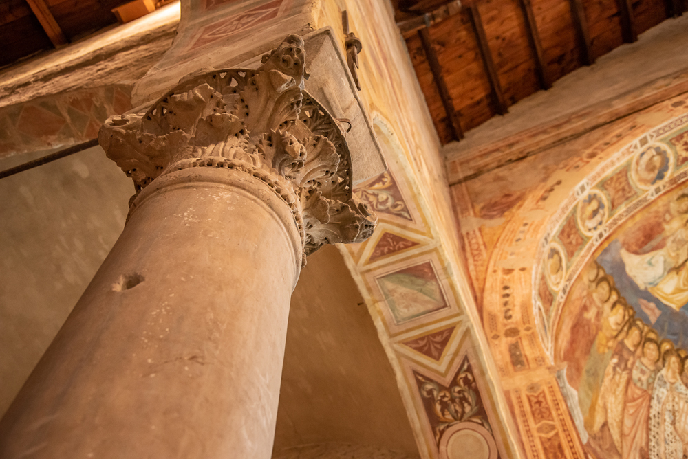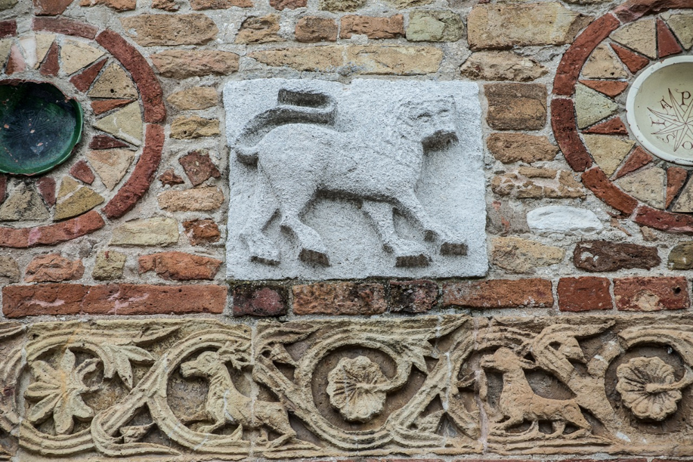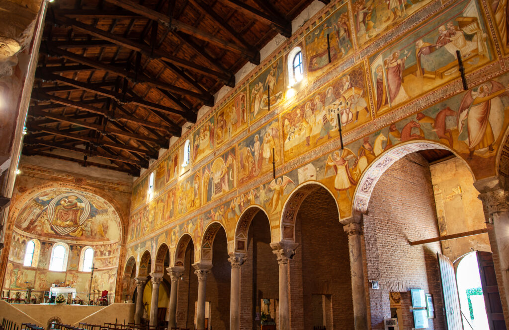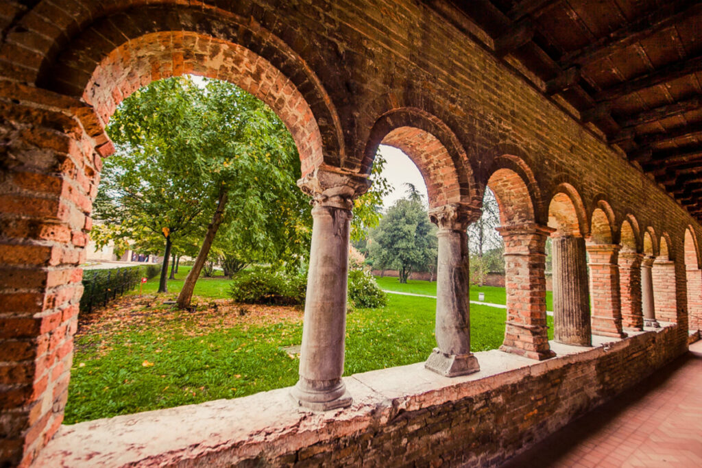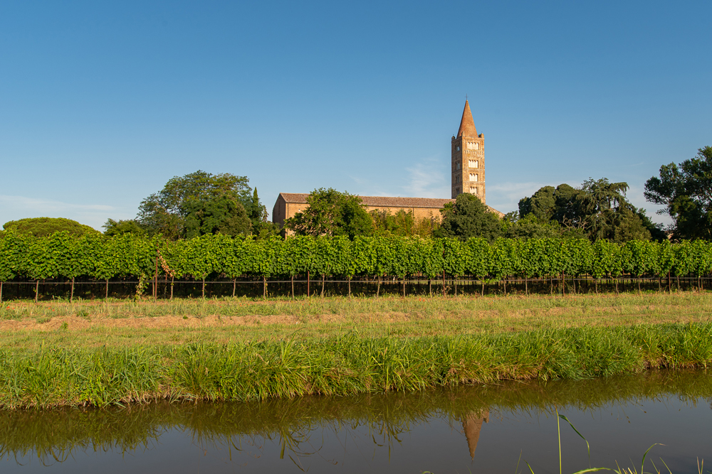 Pomposa e l’ambiente di cui fa parte sono una galleria di sfumature cromatiche senza fine: l’erba, le piante, le coltivazioni, gli animali, la pietra scolpita, i laterizi, gli affreschi, i mosaici, il cielo, l’acqua…
