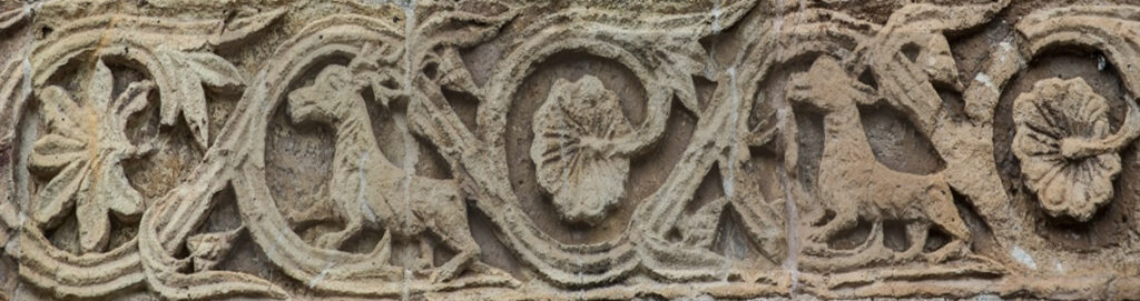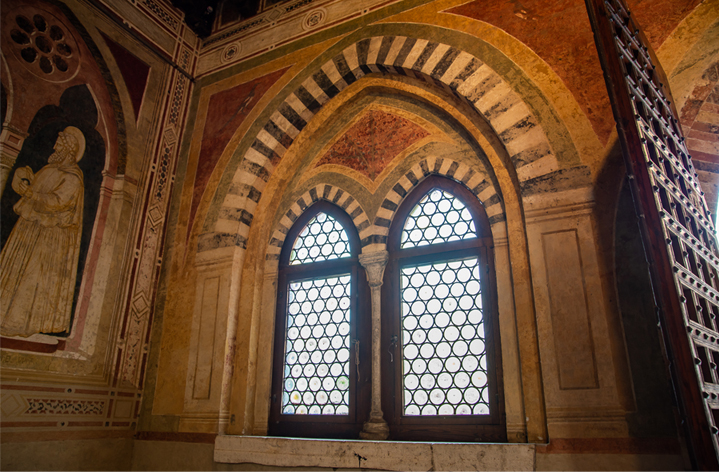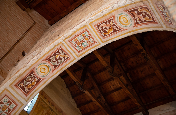 – In copertina particolare del catino absidale con angelo che regge il cartiglio “Beati oculi qui vident qu[a]e vos vide[te]” – scatto di Antonella Galardi